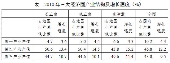 三大經濟圈中,2010年三次產業增長速度均超過全國平均水平的有幾個?