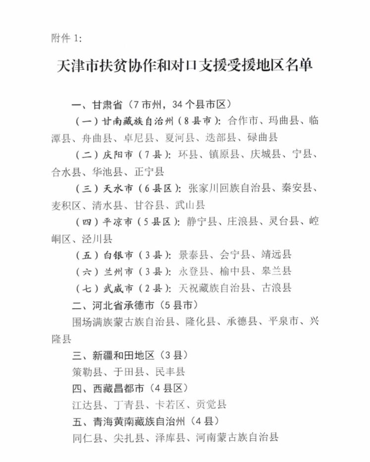 附件:1.天津市扶貧協作和對口支援受援地區名單