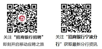 官方微信:掃描下方二維碼,關(guān)注“招商銀行招聘”微信公眾平臺,獲取的校園招聘信息,點擊“校園招聘”,申請感興趣的職位,投遞簡歷!