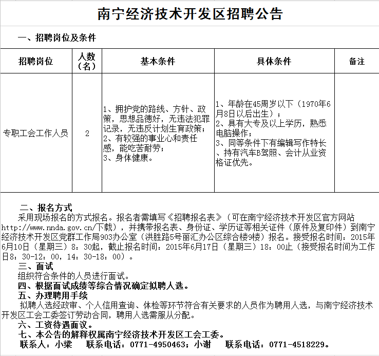 2015廣西南寧經開技術開發區招聘公告【2人】