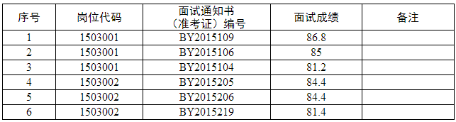 一、根據(jù)《公告》規(guī)定,按照招聘計劃數(shù)與面試成績從到低分1:3的比例確定筆試對象,根據(jù)面試結果,確定以下考生進入筆試。