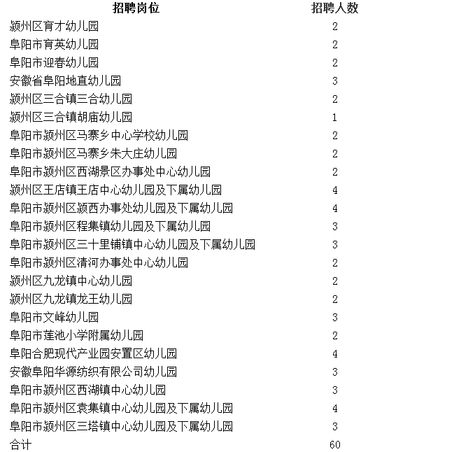 現將潁州區2015年度公開招聘幼兒教師設置崗位及招聘人數補充公告如下: