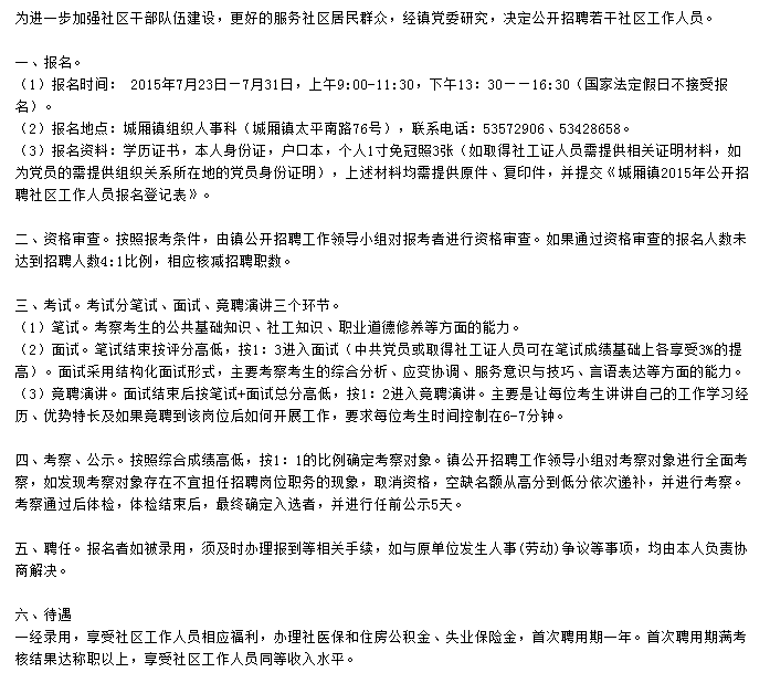 原標(biāo)題:城廂鎮(zhèn)2015年公開招聘社區(qū)工作人員簡章