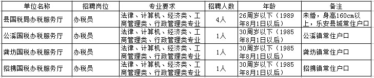 因工作需要,樂安縣國家稅務局擬面向全縣公開招收聘用制辦稅服務人員7名。為做好此次招聘工作,特制定本方案。