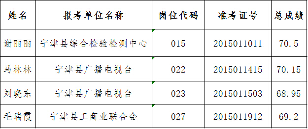 2015年寧津縣事業(yè)單位公開招聘資格復(fù)核、考察遞補人員名單