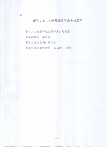 2015安徽蕭縣公務員考試錄用通知