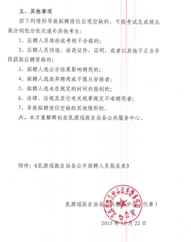 2015廣東乳源縣辦事大廳窗口專職人員招聘公告【招8人】