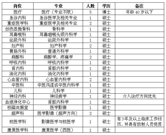 4、具備全日制碩士研究生及以上學歷(含2016年應屆畢業生),臨床專業要求第一學歷為全日制臨床醫療專業本科;年齡30周歲及以下(1986年1月1日及以后出生),特殊急需崗位年齡適當放寬;有工作經歷者,要求具備二級以上醫院工作經歷。