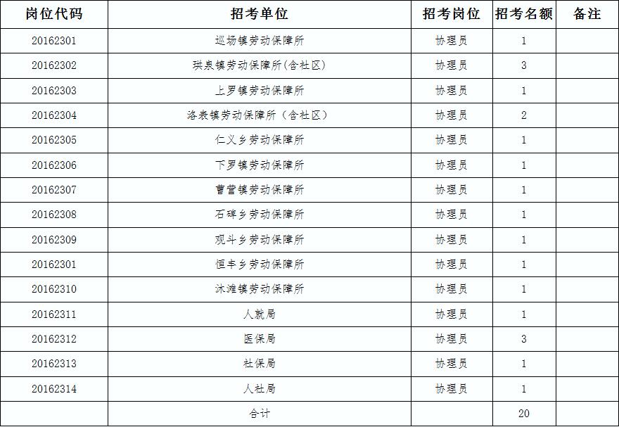 各鎮(zhèn)(鄉(xiāng))就業(yè)和社會(huì)公共服務(wù)機(jī)構(gòu)協(xié)理員共20名。珙縣公開(kāi)招考基層就業(yè)和社會(huì)公共服務(wù)機(jī)構(gòu)協(xié)理員崗位表: