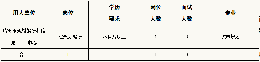 原標(biāo)題:臨汾市規(guī)劃局所屬事業(yè)單位招聘工作人員面試實(shí)施方案