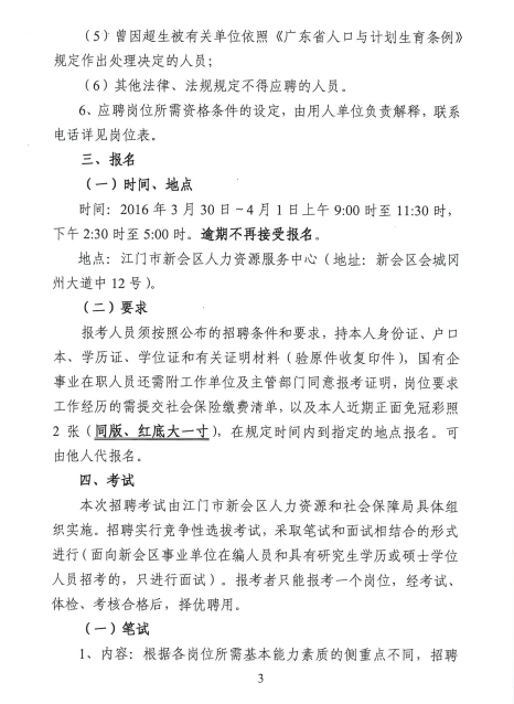 2016上半年廣東江門市新會區招聘機關雇員、事業單位職員公告【222人】