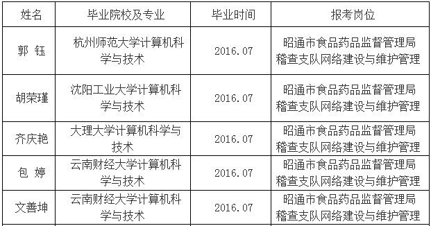 附:昭通市食品藥品監督管理系統2016年緊缺專業技術人才資格復審名單