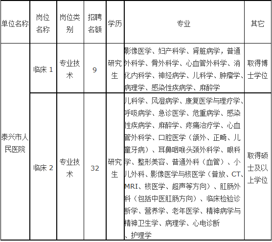 為進一步優化人員隊伍結構,醫療服務水平,泰興市人民醫院面向社會公開招聘41名高層次人才。根據省委辦公廳、省政府辦公廳《江蘇省事業單位公開招聘人員辦法》(蘇辦發〔2011〕46號)規定,現將有關事項公布如下: