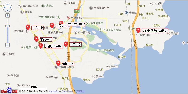 福建省2016年公務(wù)員錄用考試筆試于4月23日(星期六)舉行,我市共設(shè)置寧德一中、寧德五中、寧德十中、寧德市高級(jí)中學(xué)、蕉城中學(xué)、東僑中學(xué)、寧德師范學(xué)院新校區(qū)、寧德技師學(xué)院等8個(gè)考場(chǎng),具體地圖如下,請(qǐng)各考生通過(guò)百度地圖等工具事先確認(rèn)好自己的考場(chǎng)位置。