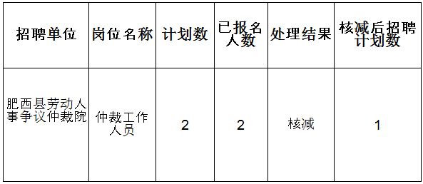 2016安徽肥西縣勞動人事爭議仲裁院選調(diào)崗位核減情況公告