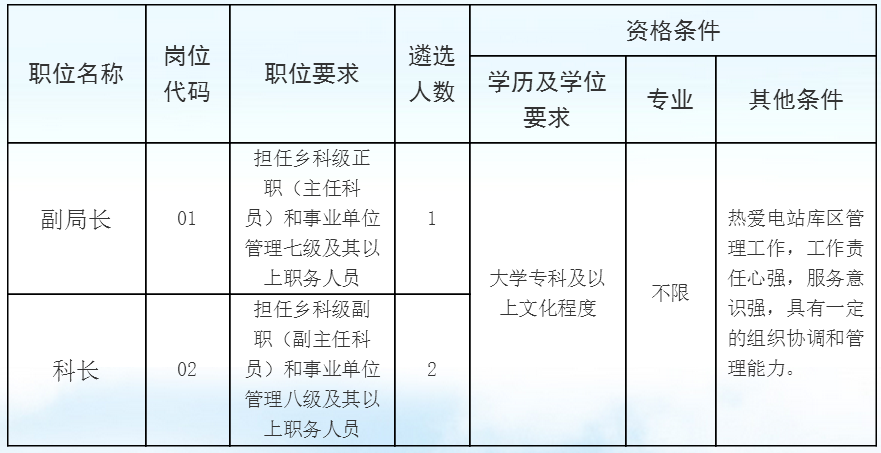 2.熱愛電站庫區管理工作,工作責任心強,服務意識強,具有一定的組織協調和管理能力;