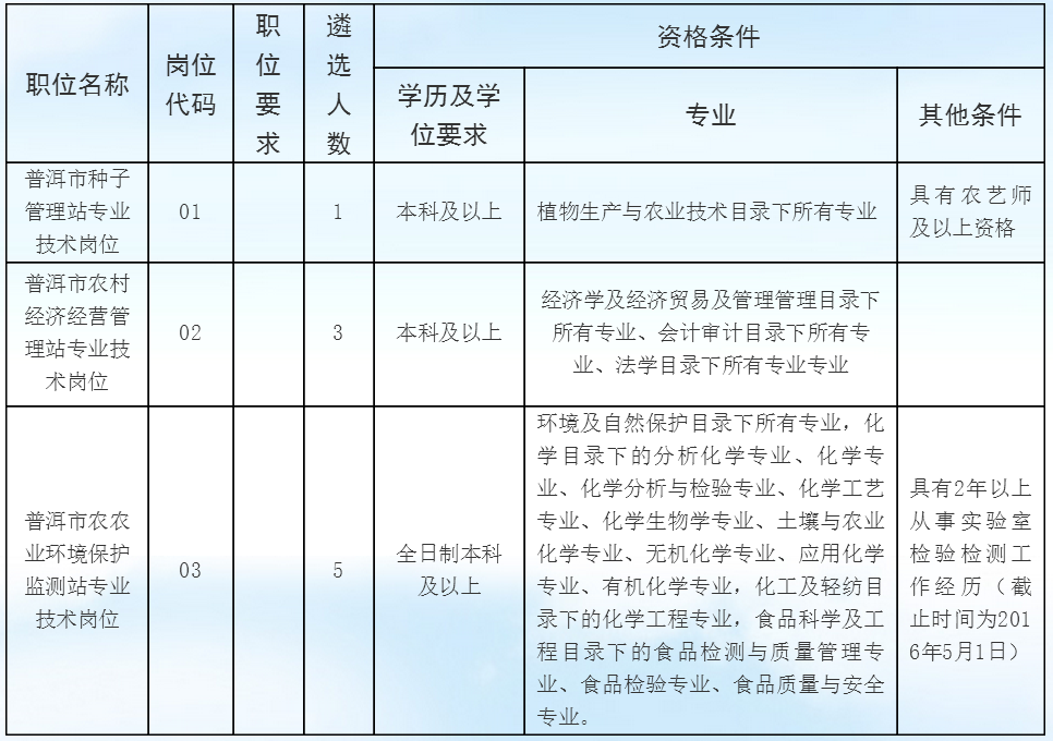 2.報考普洱市農村經濟經營管理站專業技術人員崗位的,應具備下列條件: