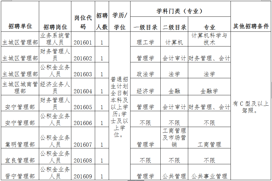 (二)招聘崗位及條件(注:專業目錄參照《2016年云南省公務員考試專業(學科)指導目錄》)