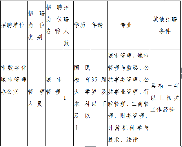 昆明市數(shù)字化城市管理辦公室面向社會(huì)公開招聘1名符合上述條件的高等院校畢業(yè)生,年齡在35周歲及以下,即:1981年1月1日(含)以后出生。普通招生計(jì)劃全日制院校應(yīng)屆(2014-2016年)畢業(yè)生不受年齡限制。