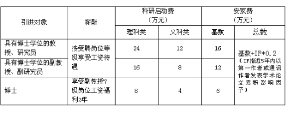 聘用人員為事業編制,薪酬待遇按國家及政策規定執行,具有博士學位人員享有如下科研啟動費和安家費: