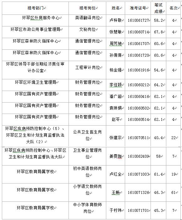 根據(jù)《關(guān)于確定2016年威海市環(huán)翠區(qū)屬事業(yè)單位公開(kāi)招聘筆試合格分?jǐn)?shù)線和面試資格審查有關(guān)問(wèn)題的通知》規(guī)定,面試人選因資格審查不合格、棄權(quán)或遞補(bǔ)棄權(quán)造成職位上的人員空缺,由招錄機(jī)關(guān)按筆試成績(jī)依次遞補(bǔ)。現(xiàn)將遞補(bǔ)名單予以公布。請(qǐng)下列考生于6月12日下午4點(diǎn)之前提交資格審查材料,具體要求見(jiàn)《關(guān)于確定2016年威海市環(huán)翠區(qū)屬事業(yè)單位公開(kāi)招聘筆試合格分?jǐn)?shù)線和面試資格審查有關(guān)問(wèn)題的通知》。