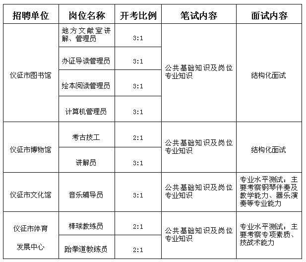 筆試采取閉卷考試方式,按照規(guī)定的開考比例進行(見下表)。主要測試公共基礎(chǔ)知識及報考崗位專業(yè)知識。考試不指定輔導(dǎo)用書,采用百分制計分。筆試具體時間、地點及相關(guān)要求以筆試準(zhǔn)考證為準(zhǔn)。