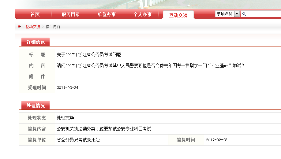 圖一:2017年浙江省公務員考試公告3月1日發布