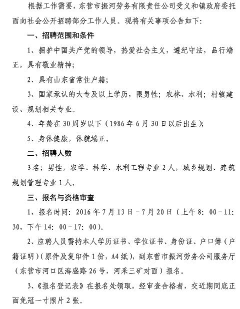 2016山東河口區義和鎮招聘公告【招3人】