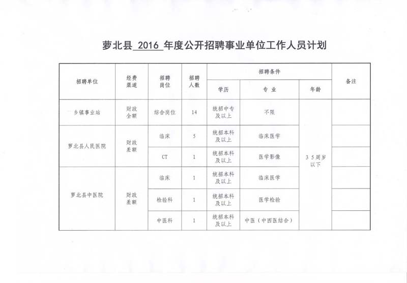 2016年度鶴崗市蘿北縣公開招聘事業單位工作人員公告【40人】