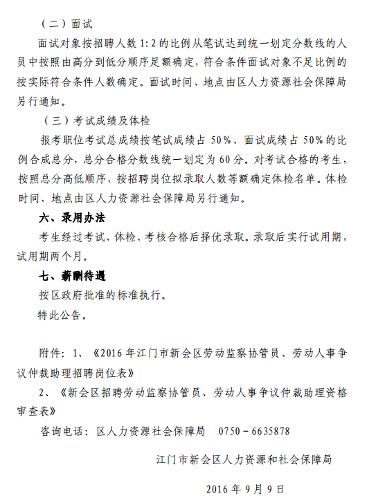 原標(biāo)題:2016年江門市新會區(qū)人力資源和社會局公開招聘勞動監(jiān)察協(xié)管員公告
