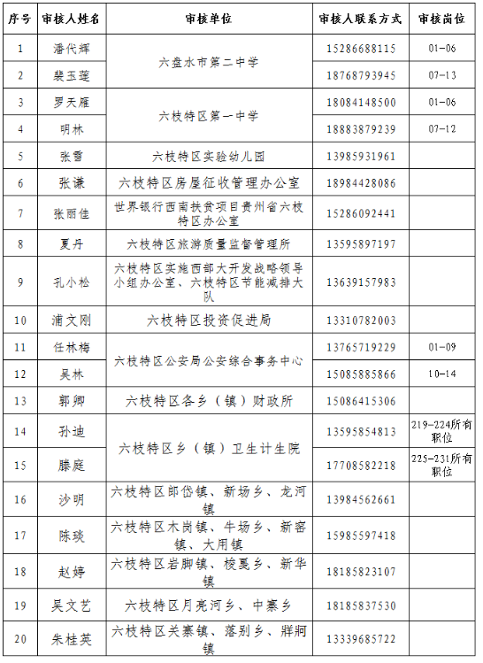 原標題;六枝特區2016年第四季度面向社會公開招聘事業單位工作人員網上資格初審工作人員聯系電話