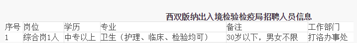 原標(biāo)題:西雙版納出入境檢驗檢疫局合同制人員招聘啟事
