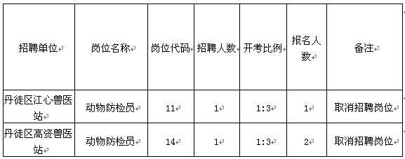 鎮江市丹徒區部分事業單位2016年集中公開招聘工作人員報名工作于10月12日下午18:00結束。根據《丹徒區部分事業單位2016年集中公開招聘工作人員公告》(鎮徒人社事招公告[2016]3號),下列事業單位的招聘崗位報名人數未達到開考比例,現予以取消: