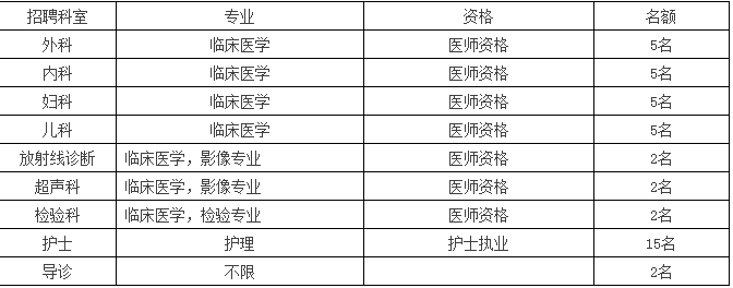 1)內科、外科、婦科、兒科、超聲科、放射線科、檢驗科等專業。