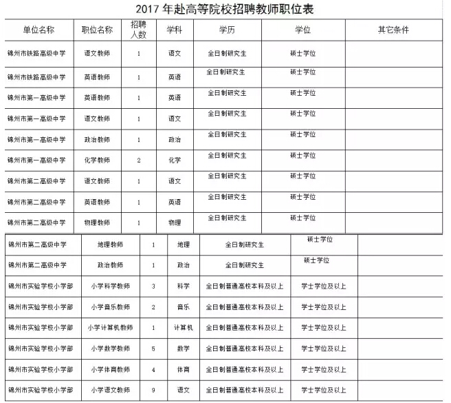 2017年錦州市教育局招聘教師公告(遼師)【招36人】