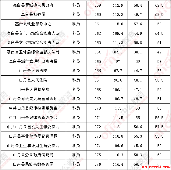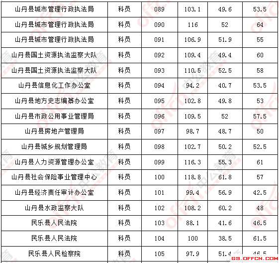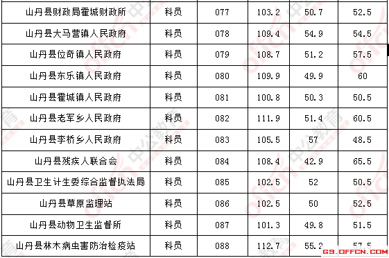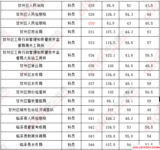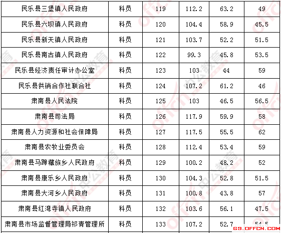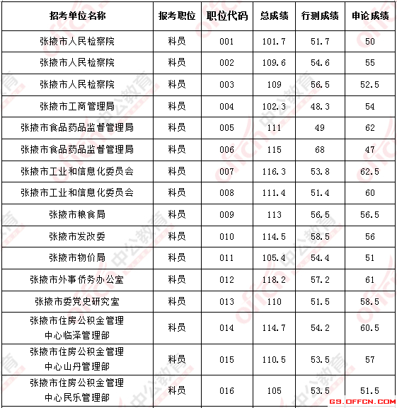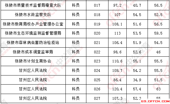 2017年甘肅張掖公務員面試入圍最低分數線