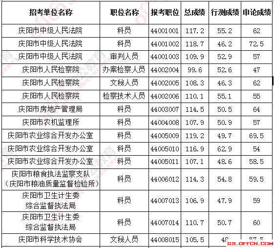 2017年甘肅慶陽公務(wù)員面試入圍最低分?jǐn)?shù)線