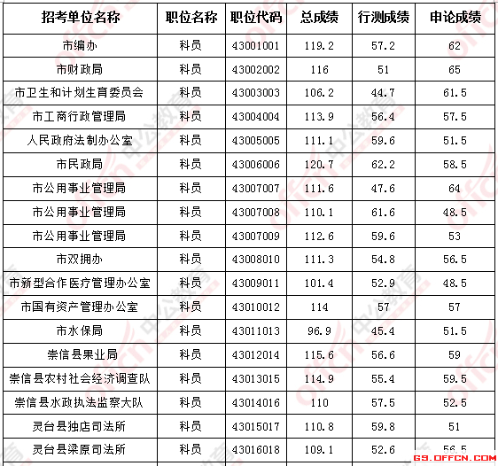 溫馨提示:根據(jù)甘肅省公務(wù)員考試招錄公告得知,甘肅省公務(wù)員面試人員確定方式為招錄單位在資格復(fù)審的基礎(chǔ)上,根據(jù)應(yīng)試人員筆試總成績(jī)從到低分的順序確定參加面試人員(筆試有一門缺考或一門成績(jī)?yōu)榱阏撸坏么_定為面試人選)。省、市州考錄辦分別按職位筆試成績(jī),從到低分的順序,依次按計(jì)劃招錄人數(shù)與面試人數(shù)1∶3的比例確定面試人員。所以并沒(méi)有實(shí)際意義上的分?jǐn)?shù)線,以下內(nèi)容僅供參考。 (責(zé)任編輯:李明)