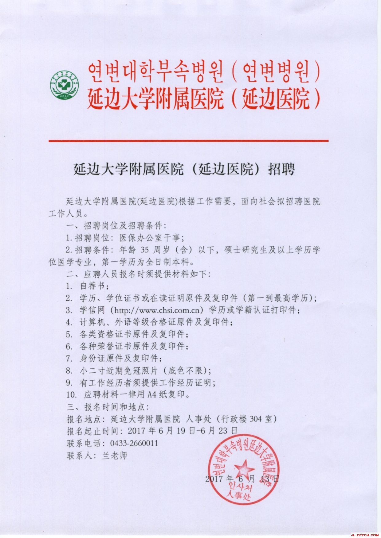 2017年延邊大學附屬醫院(延邊醫院)招聘工作人員啟事