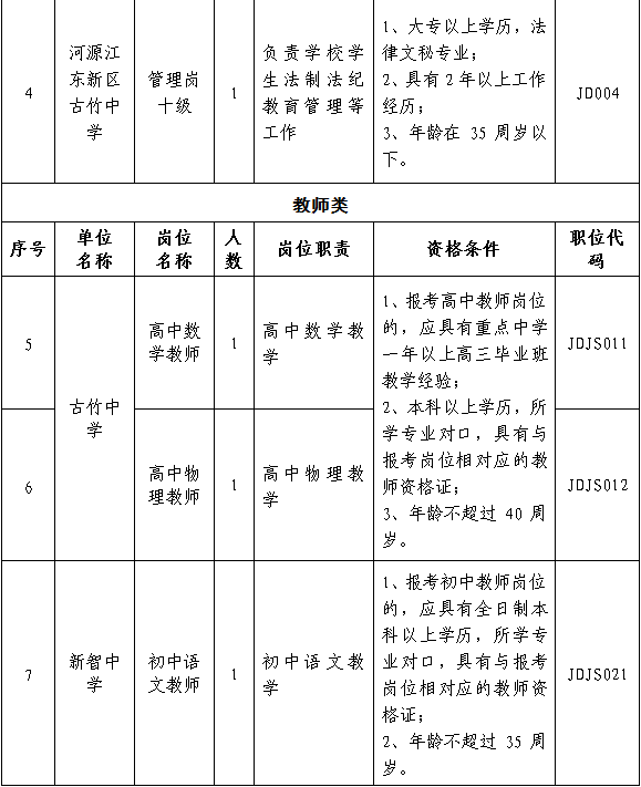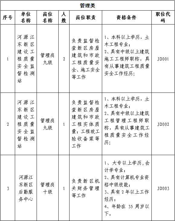 一、公開招考的單位名稱、崗位名稱、人數、崗位職責、資格條件和職位代碼。