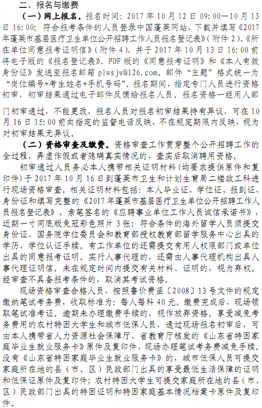 2017山東蓬萊市基層醫療衛生單位招聘13人簡章