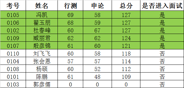 面試采用結(jié)構(gòu)化面試方式進(jìn)行。面試主要測評考生的言語表達(dá)能力、綜合分析能力、專業(yè)素養(yǎng)、個人儀表等。評委打分成績保留到小數(shù)點(diǎn)后二位小有數(shù)字,且不能為0。面試成績?yōu)?位評委分?jǐn)?shù)的平均分,面試滿分為100分。