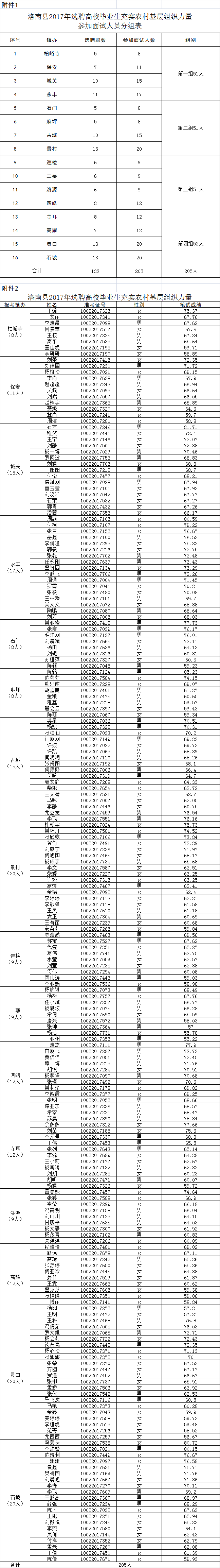 1、2017年洛南縣選聘高校畢業生充實農村基層組織力量參加面試人員分組表