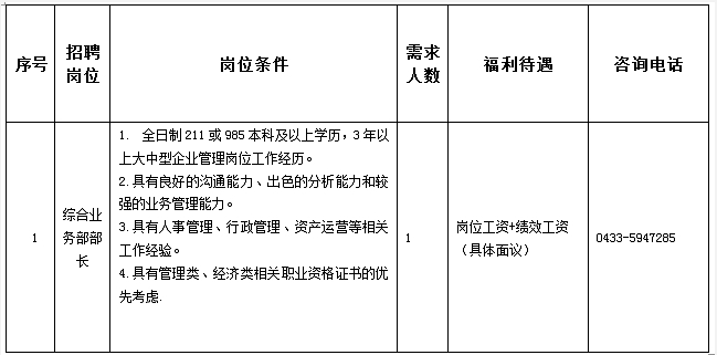 因公司業務發展需求,經研究,現招聘公司中層崗位1名。