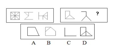 圖形推理試題主要考查應考者抽象推理的能力。要求考生從四個備選答案中選擇最符合規(guī)律的一個,替代題干中的問號,使圖形呈現出一定的規(guī)律性。試題包括多種類型,僅舉其中一種類型為例。