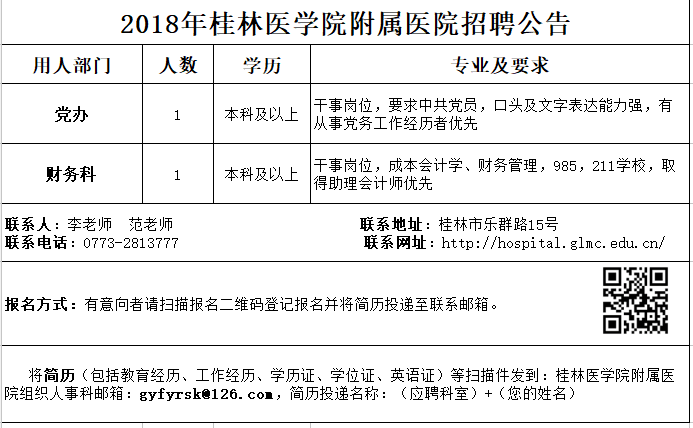 2018廣西桂林醫學院附屬醫院行政職能科室招聘公告【招2人】