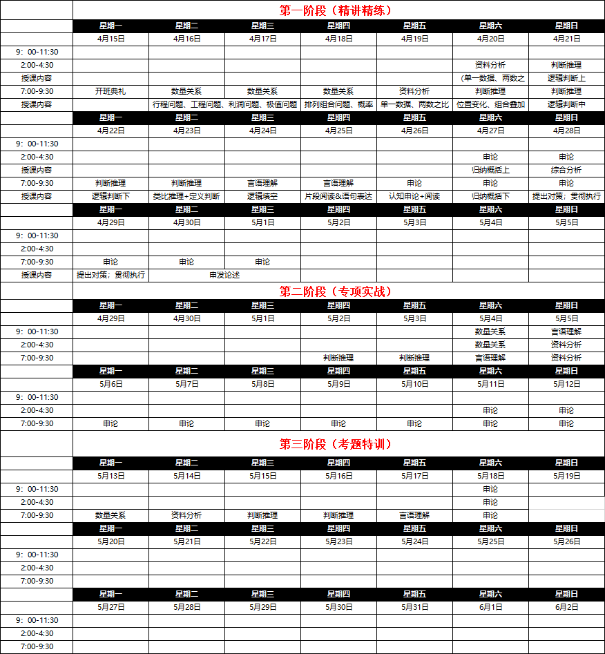 2019年省考小班私教直播特訓(xùn)營(yíng)課程安排表