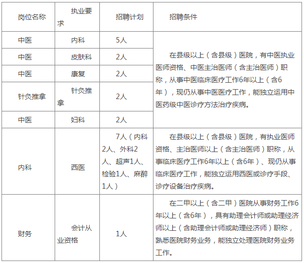 臨滄市中醫院此次公開選調事業編制崗位21名,其中:中醫崗位13人(內科5人、皮膚科2人、婦科2人、康復2人、針灸推拿崗位2人)、西醫崗位7人(麻醉1人、內科2人、外科2人、超聲1人、檢驗1人)、財務崗位1人。