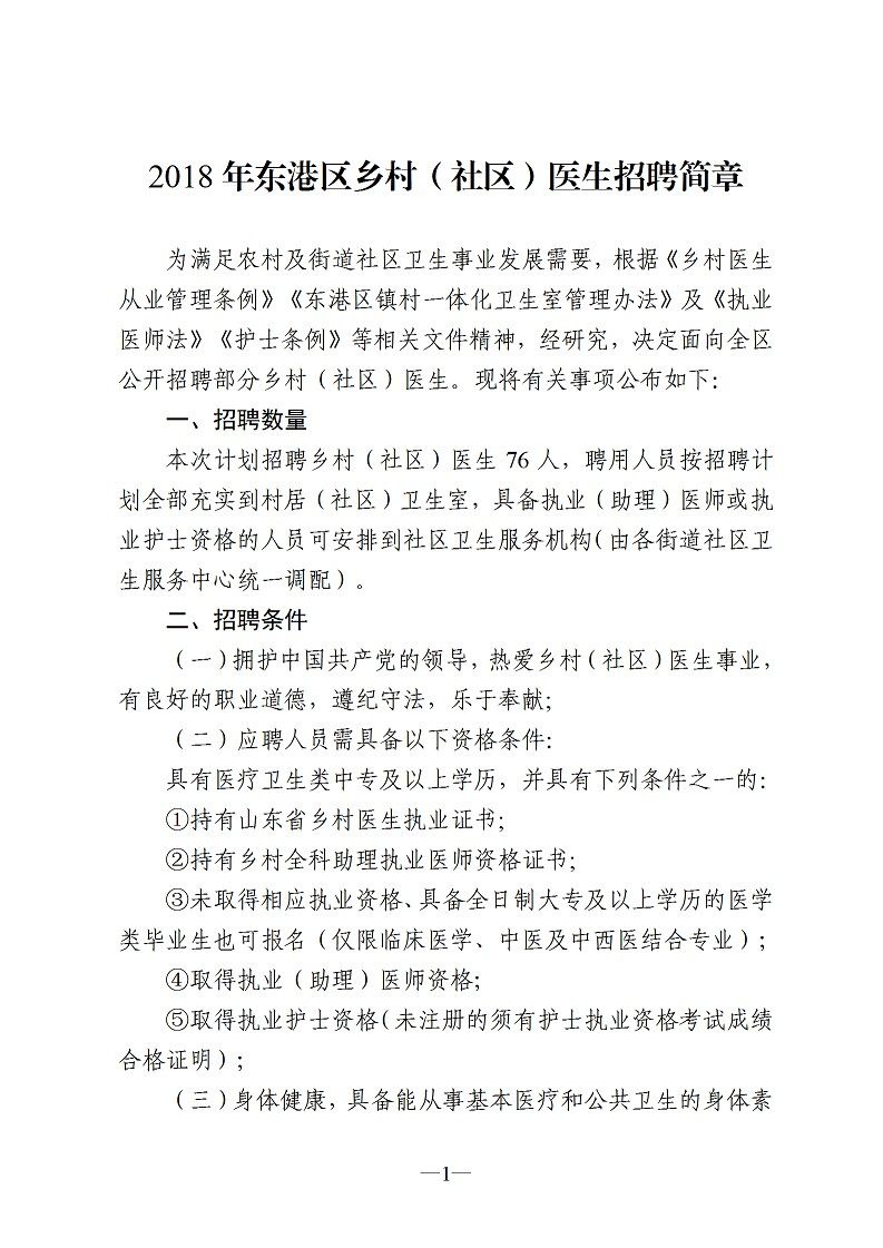 2018山東東港區(qū)鄉(xiāng)村(社區(qū))醫(yī)生招聘76人簡(jiǎn)章