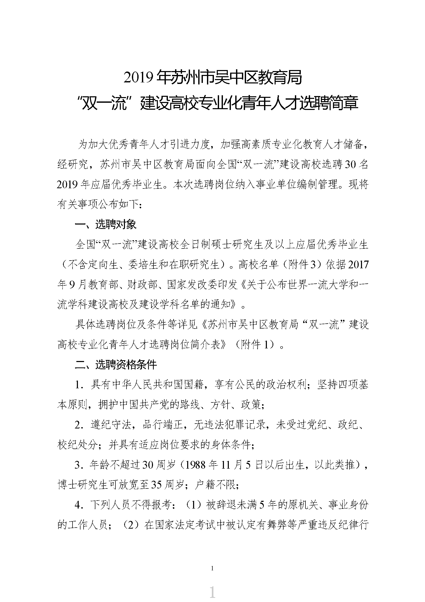 原標題:2019年蘇州市吳中區教育局“雙”建設高校專業化青年人才選聘簡章
